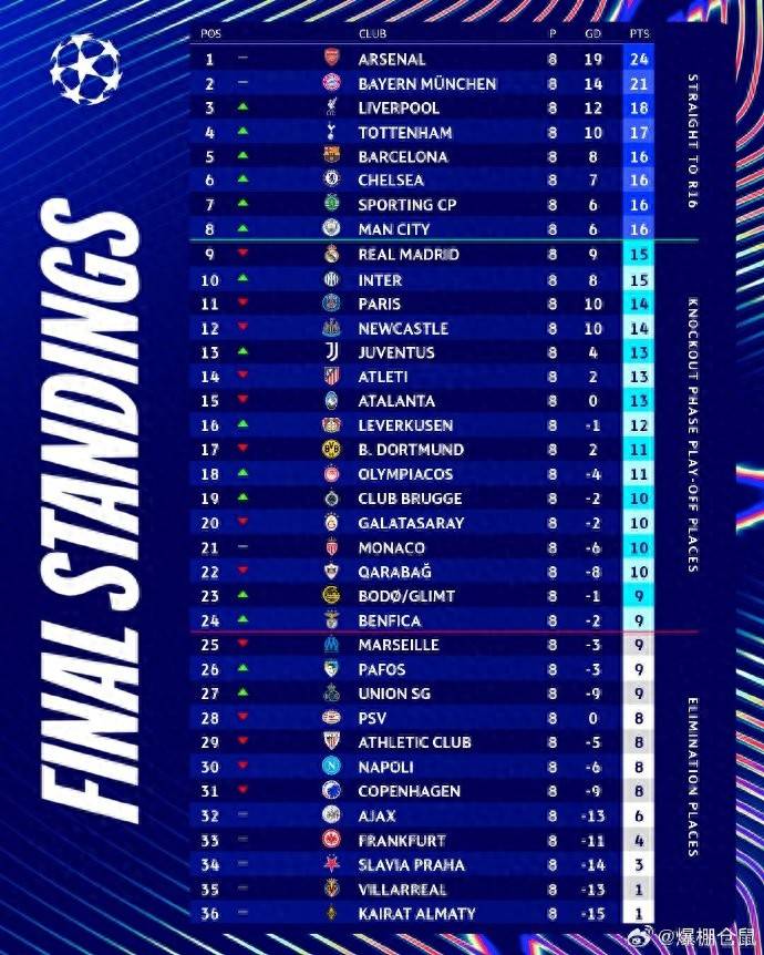30 01月 2026 6 欧冠直通淘汰赛名单揭晓,8强率先晋级,席位尘埃落定! content="https://q3.itc.cn/q_70/images03/20260129/c001daef4e... 欧冠 #林贝贝 #附加赛 #欧冠 #阿森纳 #朱晓龙 #奥林匹亚科斯 #淘汰赛 #葡萄牙体育 #国米 #加拉塔萨雷 #卡拉巴赫
